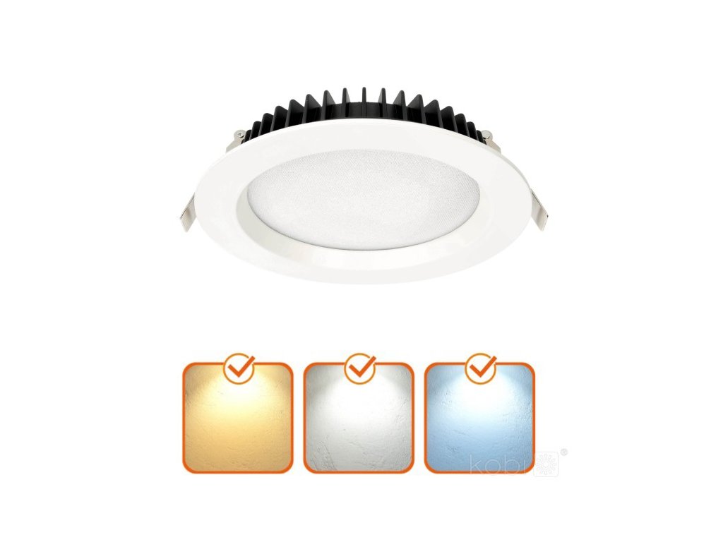Kobi Pro NEXEYE 20W 3CCT je profesionální zapuštěné LED stropní svítidlo navržené pro dlouhodobý provoz, vysoký světelný výkon a spolehlivost i v náročnějších podmínkách. Díky technologii 3CCT umožňuje volbu barvy světla podle typu prostoru – teplá, neutrální nebo studená bílá.
