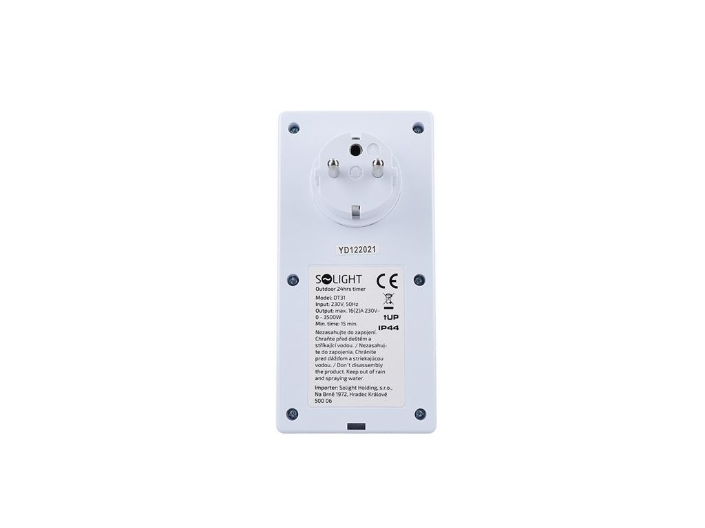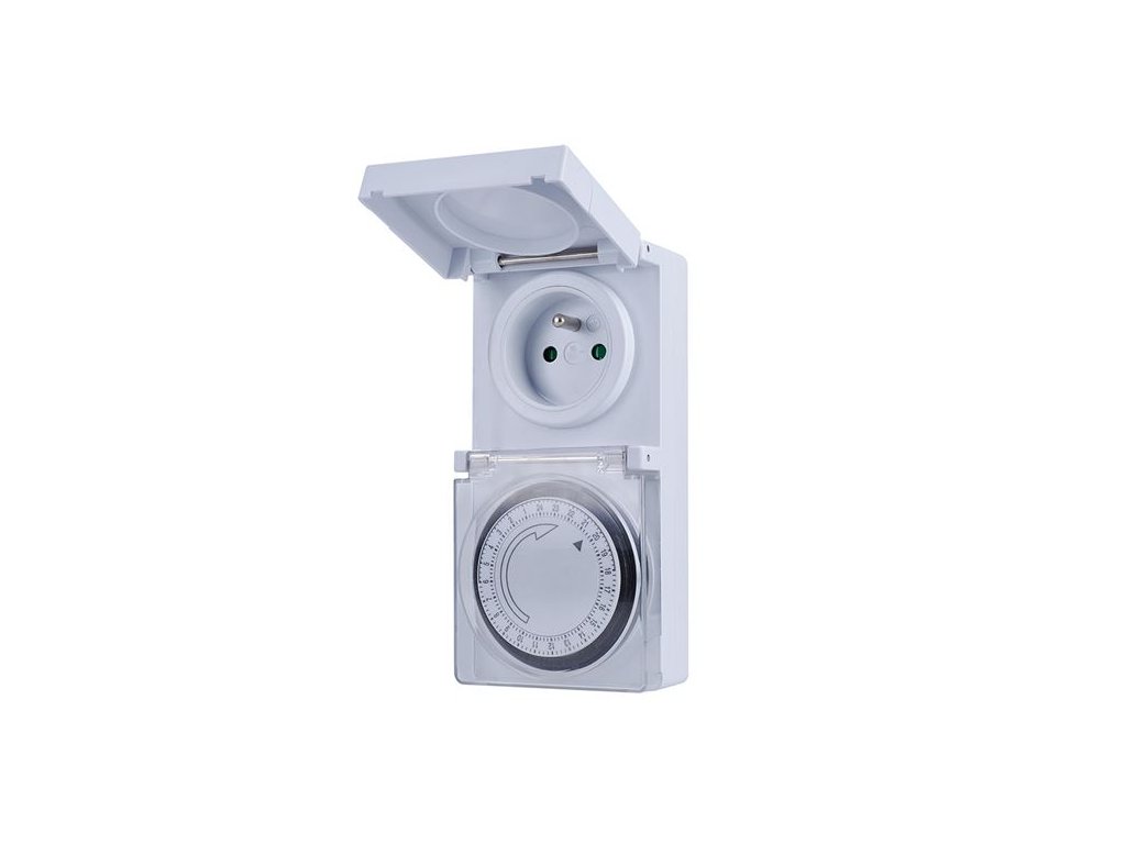 Tento mechanický časovač nabízí 24hodinové nastavení s minimálním časovým úsekem 15 minut. Disponuje dětskou pojistkou a pracuje na napětí 230V/16A, 50Hz. Má kryt zásuvky s gumovým těsněním a poskytuje voděodolnou ochranu na úrovni IP44.