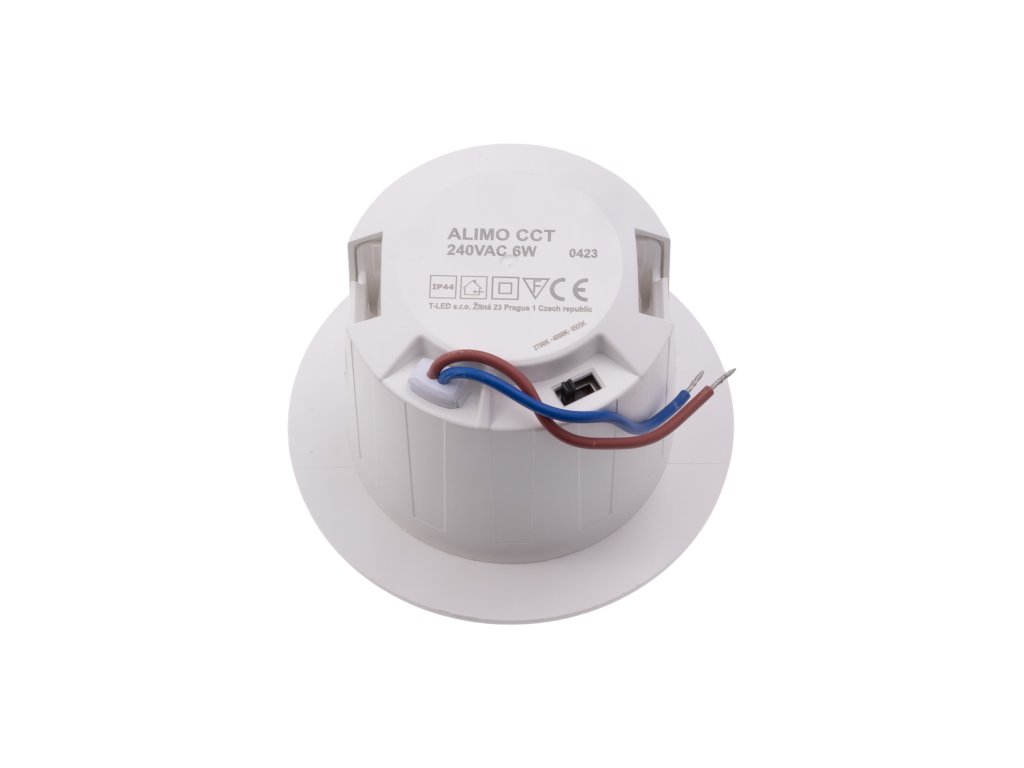 Stropní bodové nebo podhledové CCT LED svítidlo v bílé barvě s krytím IP44 vhodně pro instalaci na strop v interiérech jako jsou kuchyně, obývací pokoje, koupelny a podobně, ale také pro osvětlení venkovních prostor. Svítidlo můžete také nainstalovat do podhledů pomocí pružin v balení. Světlo má index oslnění UGR<19.