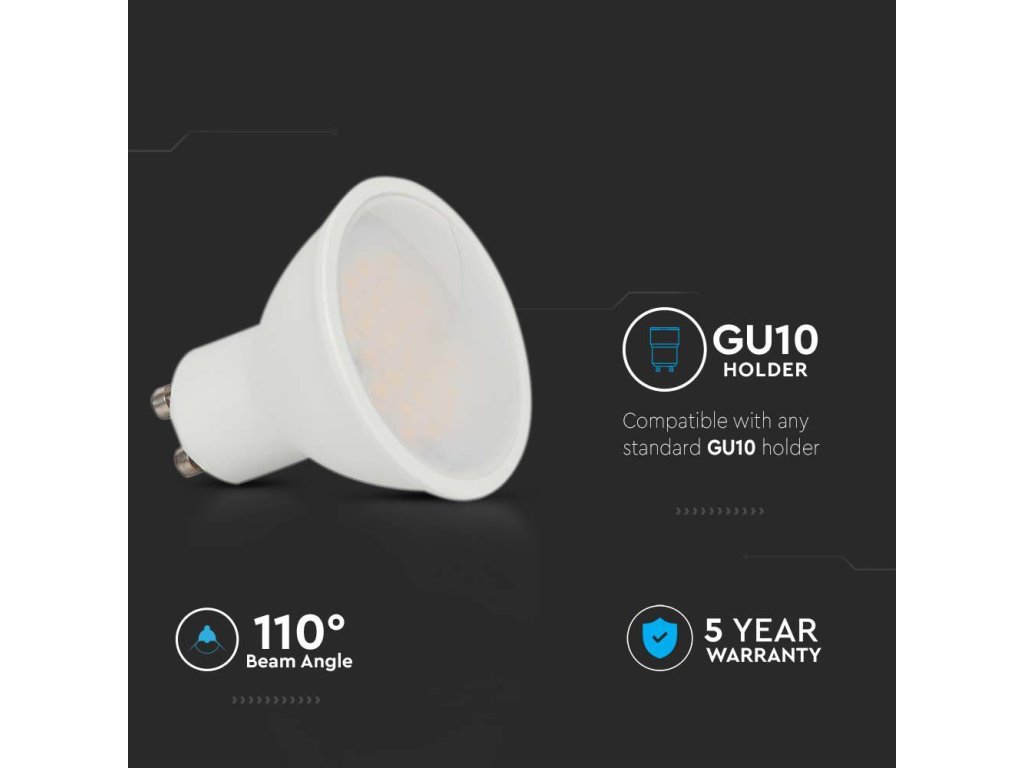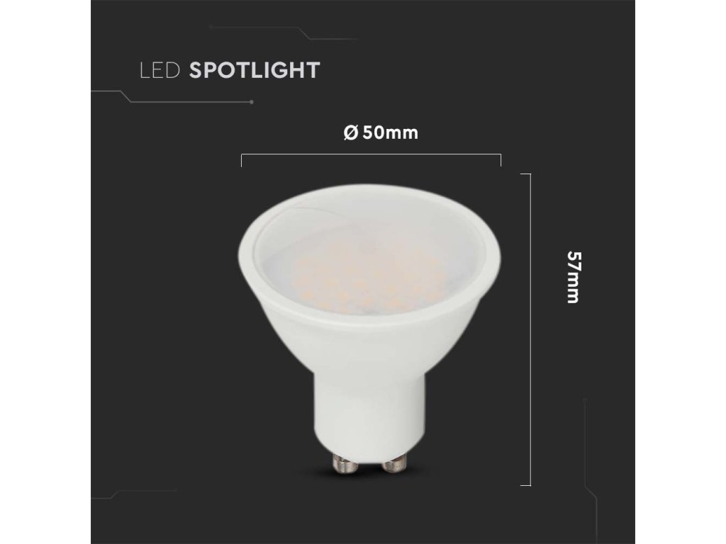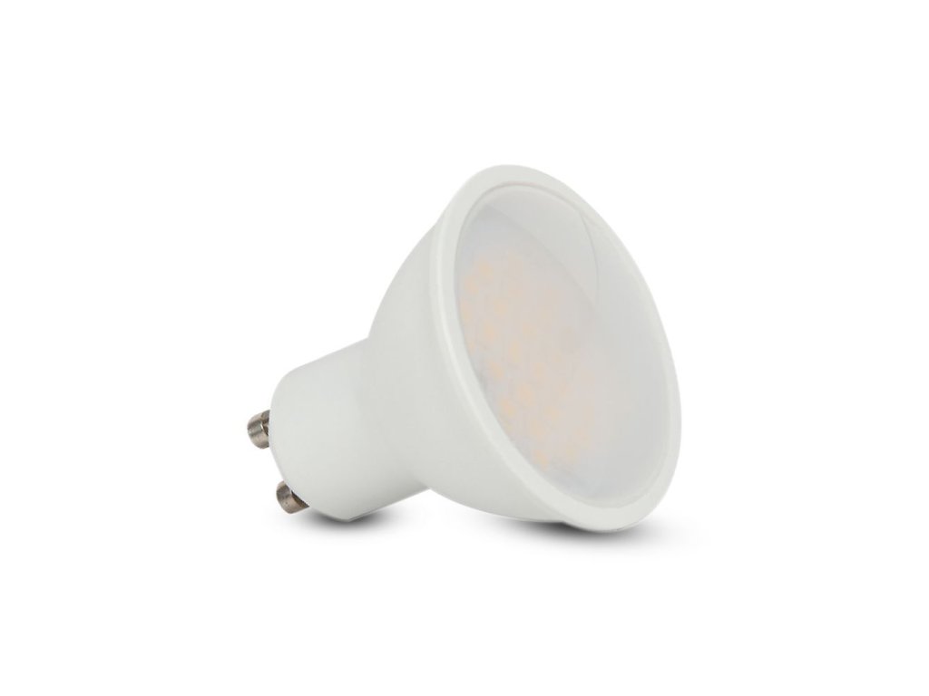 Úsporná LED žárovka s paticí GU10, vybavená kvalitním SMD Samsung čipem, vysoký index podání barev CRI >80 a světelný tok 400 lm, což odpovídá klasické 35W žárovce.