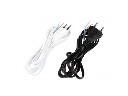 Dvoužilový plochý vodič s laněným měděným jádrem. Izolace je z bílého PVC a jedna z žil je označena podélným červeným proužkem.