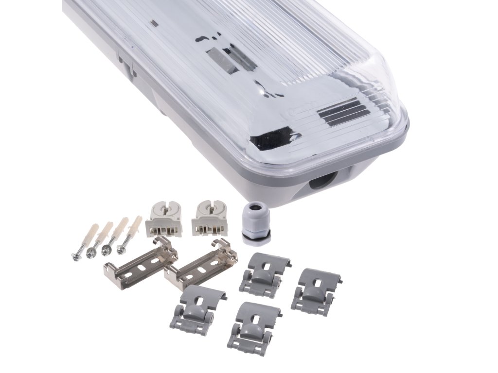Kompletní LED set tvořený prachotěsným svítidlem IP65 a dvěma vysoce účinnými LED trubicemi T8 o délce 150 cm. Celkový světelný tok 6000 lm při příkonu 2×24 W zajišťuje silné, rovnoměrné a úsporné osvětlení i náročných provozů.