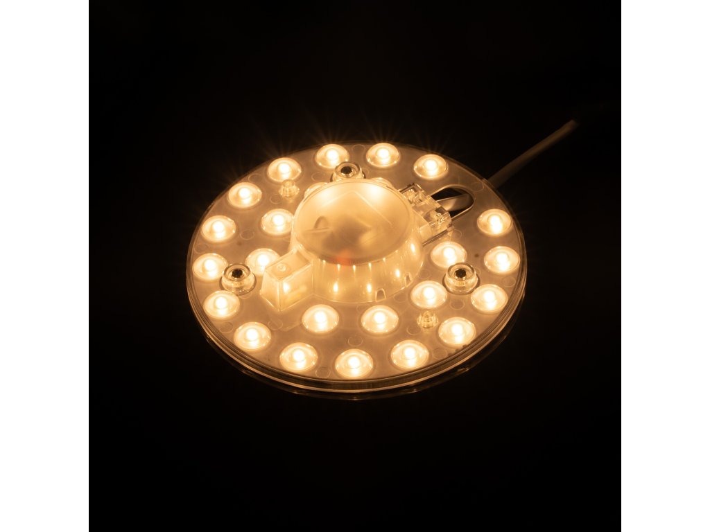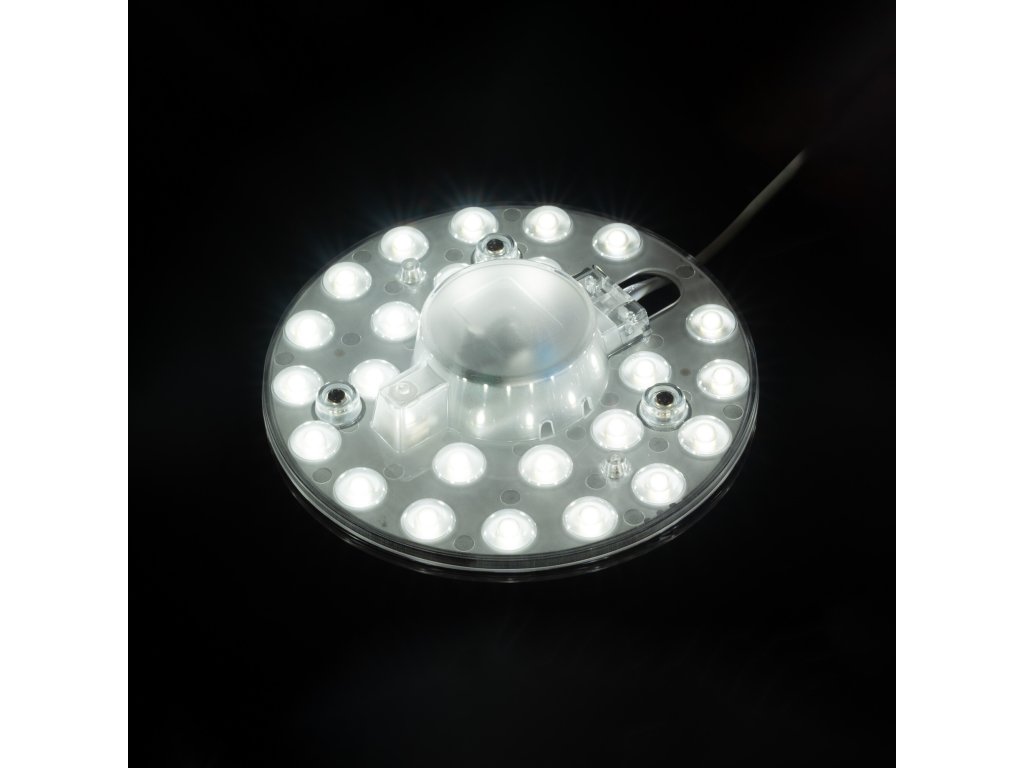 Magnetický LED modul je určený pro modernizaci stropních svítidel. Rychlá a snadná instalace spořívá v odstranění starých světelných zdrojů (například patic E27) a uchycením na kovový povrch svítidla třemi magnety, které jsou již integrované na LED modulu. Z bezpečnostních důvodů svěřte montáž odborníkovi.