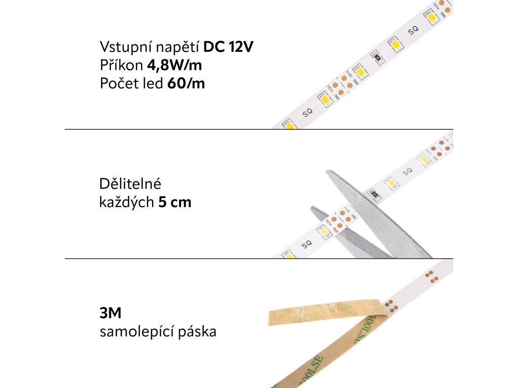 LED pásek vnitřní SQ3-300 4,8W 12V záruka 3 roky