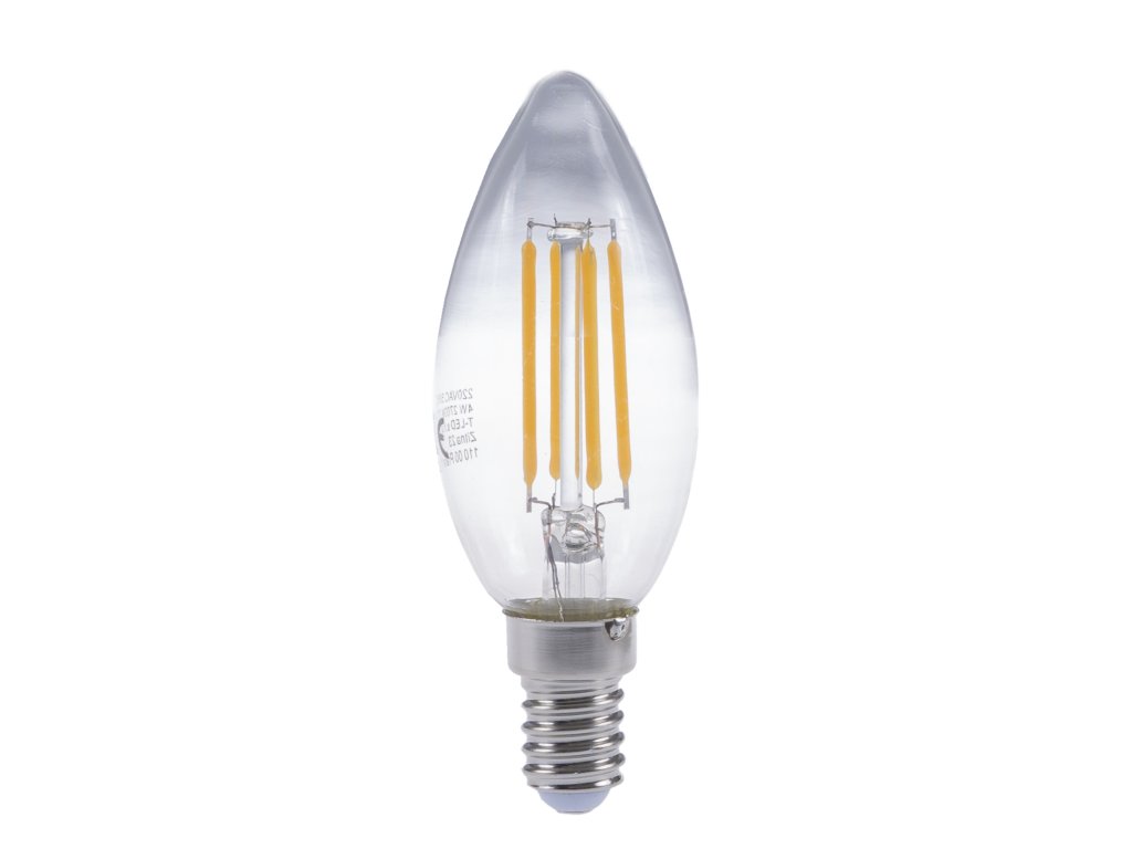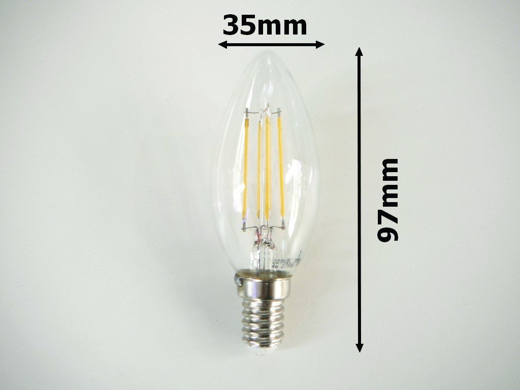 LED úsporná žárovka E14 C35 s FILAMENT COB Sapphire čipy na 230V se závitem E14, která nahrazuje klasickou žárovku. Vhodné do lampiček, lustrů, koupelen a do jiných míst, kde chcete ušetřit a při tom svítit. LED čip FILAMENT Sapphire má safírovou základnu (má kovový vzhled) a má oproti čipu Ceramic, který má keramickou základnu a je levnější, (má bílý vzhled) lepší chlazení, účinnost, životnost a světelný tok. Existují také základny z bronzu a skla, ty jsou používány ve velmi levných FILAMENT žárovkách, tyto čipy se velmi špatně chladí a mají velmi krátkou životnost. Specifikace LED žárovky Vstupní napětí 230V AC Patice E14 Barevná varianta Teplá bílá Teplota 2700K Světelný tok 480lm CRI >80 Příkon 4W Úhel svitu 360° LED čip Filament Sapphire COB Epistar Provozní teplota -15°C až max. 60°C Životnost až 25 000 hodin Rozměry 35×97mm (p/v) Stmívatelná NE Materiál sklo Co je teplota světla a jak ji správně vybrat? To se dozvíte zde.Doplňkové parametry