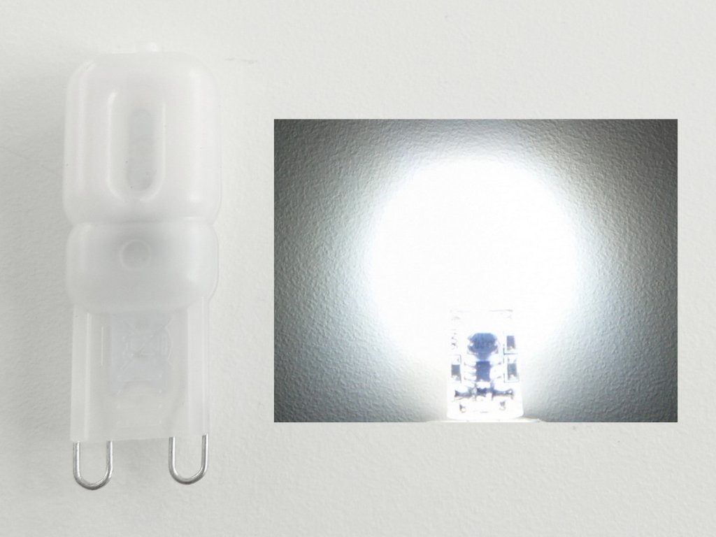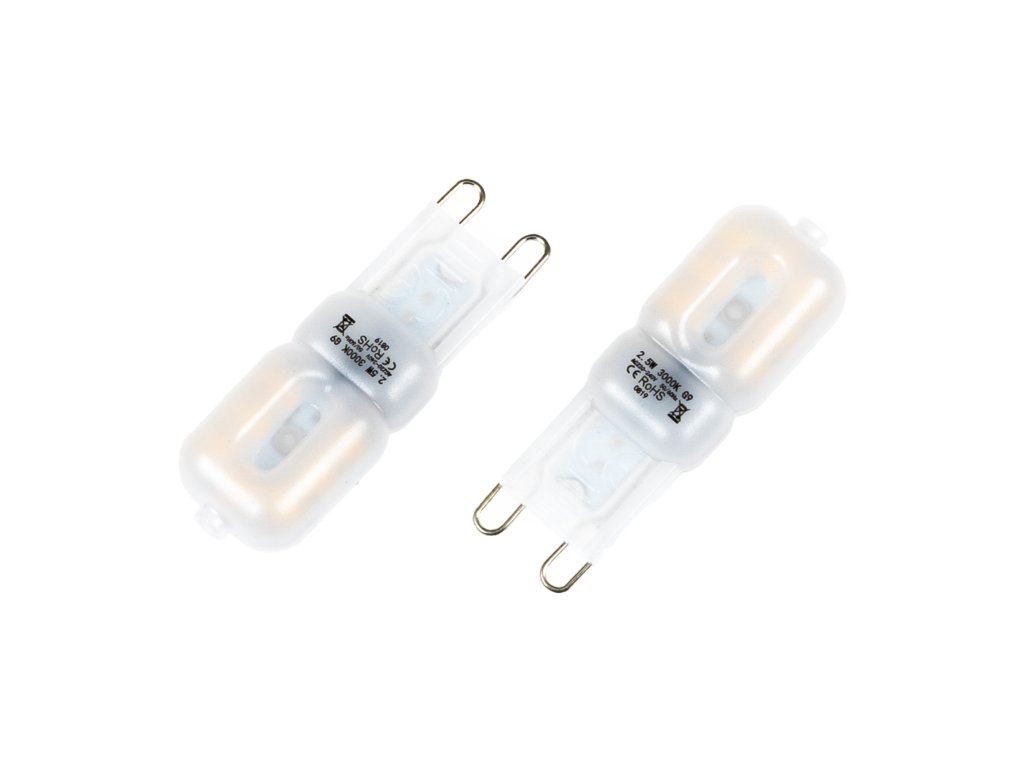 LED úsporná žárovka na 230V se paticí G9, která nahrazuje 25W halogenovou žárovku. Vhodná do bodovek, lustrů, kuchyní a do všech míst, kde chcete svítit, a přitom ušetřit. LED žárovky nabízíme ve třech barevných variantách (studená bílá, teplá bílá a bílá). Nechte si poradit při výběru barvy světla. Specifikace LED žárovky Vstupní napětí 230VAC Patice G9 Barevná varianta Teplá bílá Denní bílá Studená bílá Teplota 3000K 4000K 6500K Světelný tok 250lm 270lm 280lm CRI 80 Příkon 2,5W Náhrada za 25W halogen Úhel svitu až 320° Provozní teplota -15°C až max. 60°C Životnost až 40 000h LED čip Epistar SMD Rozměry 16x11x46mm (š/v/d) Stmívatelná NE Co je teplota světla a jak ji správně vybrat? To se dozvíte zde.Doplňkové parametry