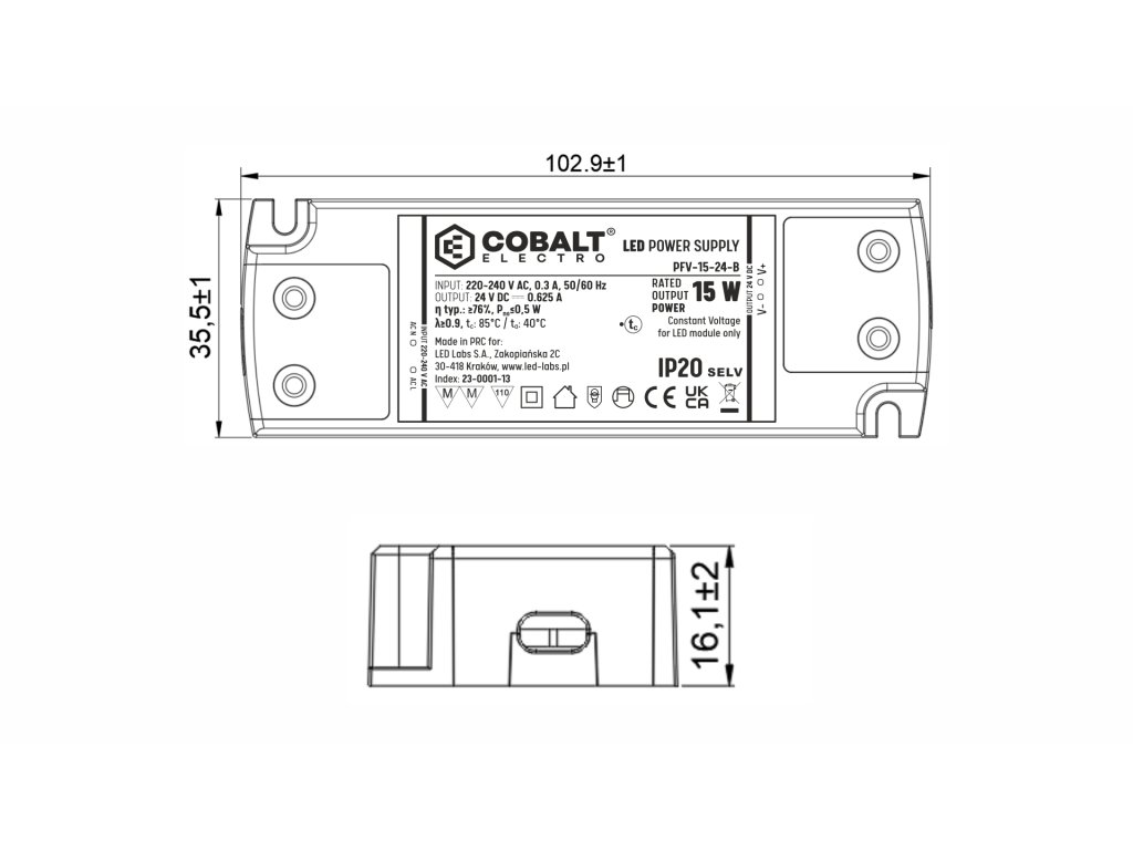 LED zdroj 24V 15W PFV Záruka 5 let