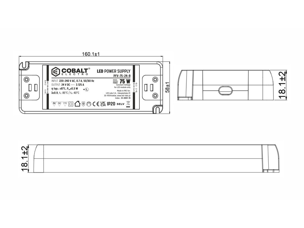 LED zdroj 24V 75W PFV Záruka 5 let