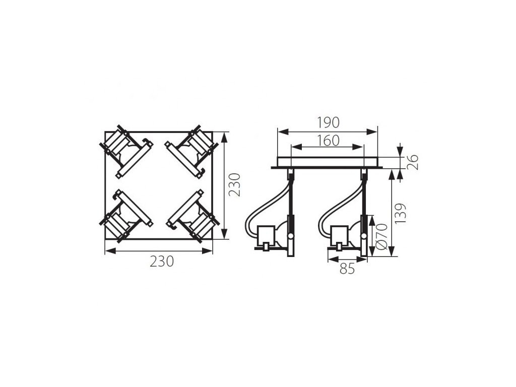 Samostatné svítidlo s perfektním designem vhodné do moderních interiérů. Specifikace LED svítidla Výklopné ANO Patice 4xGU10 Vstupní napětí 230V AC Krytí IP20 Materiál broušený a leštěný hliníkDoplňkové parametry