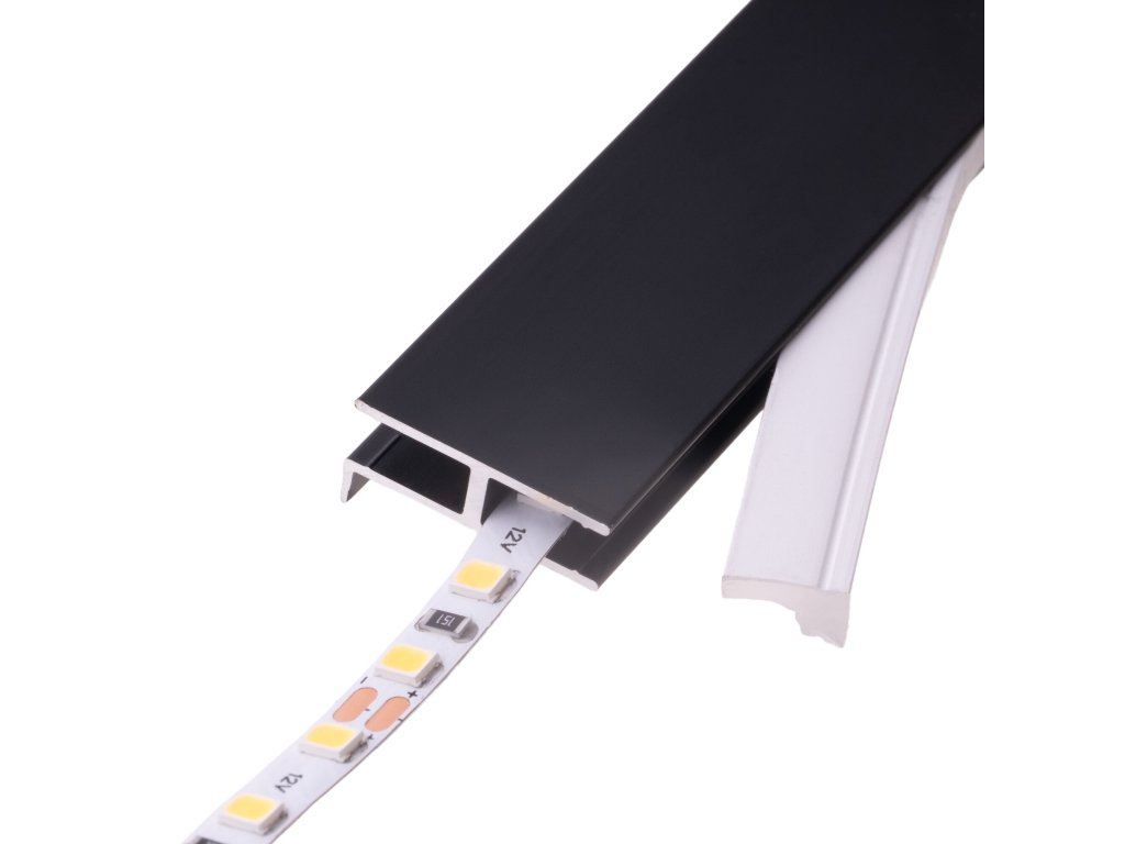 LED profil (lišta) 2SP-C černý pro LED pásky se nejčastěji používá k montáži do zádní části polic. Profil tedy můžete použít například při osvětlení polic doma, v obchodech, kuchyní nebo barů. Ten profil obsahuje dvě části na LED pásek, kdy jeden osvětluje prostor nad profilem, druhý pod ním. Pro instalaci doporučujeme LED pásek 12MINI12010, které se přesně vejde do profilu, má také dostatečnou hustotu diod a pasuje i se silikonový krytem. Součástí profilu jsou 2 silikonové kryty, které se po nalepení LED pásku vloží zpět do profilu. Lze samozřejmě osvětlit pouze jednu stranu profilu s jedním LED páskem. Koncovky nejsou součástí profilu. Související produkty Barva profilu Černý Povrchová úprava Eloxování Difuzory/kryty Je součástí profilu Koncovky Pár koncovek 2SP-C Max. výkon pásku 2*12W Profil se prodává v délkách 1 metr a 2 metry. Tolerance délky profilu ±1%.Doplňkové parametry