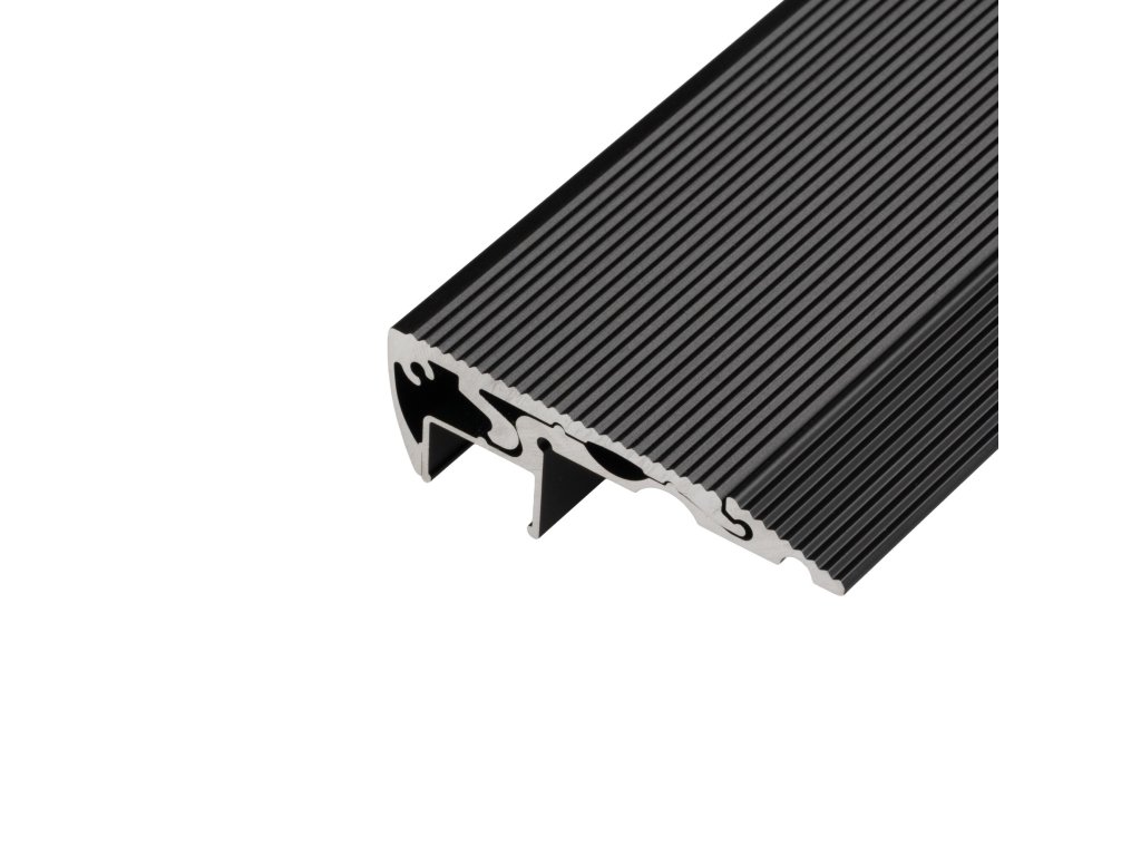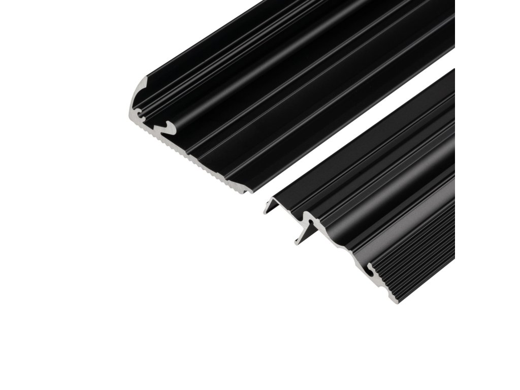 LED profil (lišta) ST2 schodišťový je vhodný k přímé montáži na hranu schodu. Profil je vhodný například pro zvýraznění hran schodů jako v domácnostech, kinech, barech, nočních klubech a dalších instalací. Instalace se provádí lepením nebo přišroubováním na hranu schodu. Profil je sloužený z 2 částí: Základní (první) část se připevní na hranu schodu (lepením nebo přišroubováním). Krytová (druhá) část se poté jednoduše nasadí na upevněný profil. Vlastnosti produktu Barva profilu Černý Povrchová úprava Eloxování Difuzory/kryty Kryt D1 Koncovky Pár koncovek ST2 Max. výkon pásku 24W Profil se prodává v délkách 1 metr a 2 metry. Tolerance délky profilu ±1%.Doplňkové parametry
