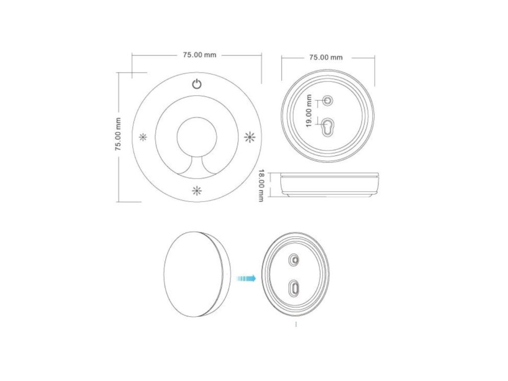 Dálkový ovladač dimLED OV SK1 S je bezdrátový radiofrekvenční ovládací systém, jednoho ovladače a několik přijímačů. Ovladač je určený pro ovládání jednobarevného osvětlení jako jsou například LED pásky nebo LED žárovky. S jedním ovladačem lze ovládat 1 zónu, která se může skládat z několika přijímačů. Tyto přijímače se po sehrání s ovladačem ovládají jako jedna sekce. Přijímač může být ukrytý (za zdí, sádrokartónem či ve skříni), není nutná přímá viditelnost přijímače pro ovladač.