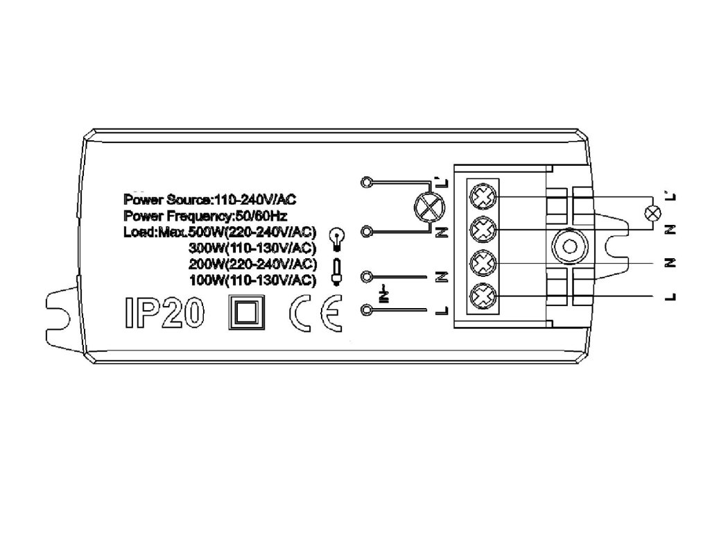 Ovládání: IR senzor funguje na systému mávnutím před senzorem, průchod napájení se zapne v ovladači mávnutím před senzorem a zapne připojené zařízení, pokud opět mávnete před senzorem, připojené zařízení se vypne.