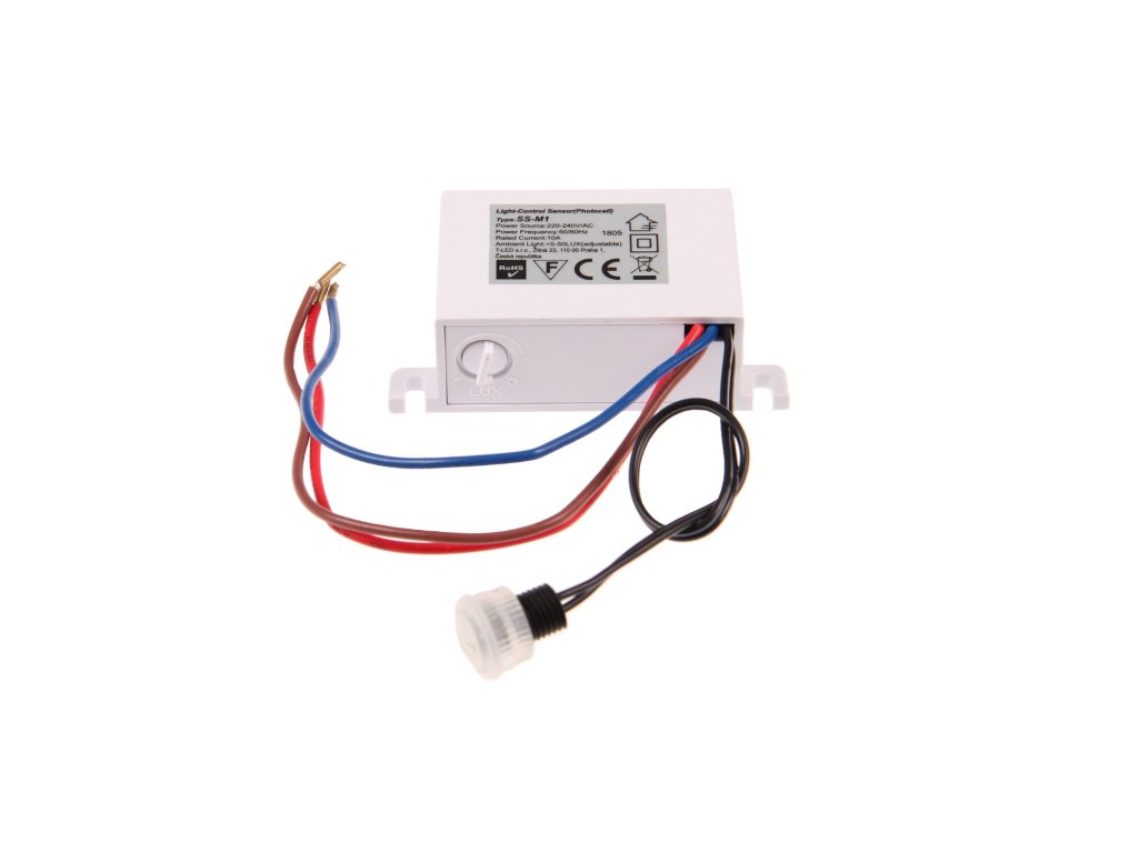 Soumrakový spínač (nebo také šero spínač) SS-M1 na 230V zapne nebo vypne automaticky osvětlení podle úrovně intenzity světla. Není poté nutné nastavovat čas sepnutí, vše se spíná dle venkovní intenzity světla (čidlo sepne po setmění). Spínač se používá pro spínání osvětlení za soumraku a v noci (pouliční a zahradní osvětlení, osvětlení reklam, výloh …)