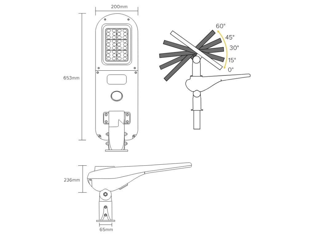 - Instalace: pro výložníky a pouliční sloupy o průměru 60 mm