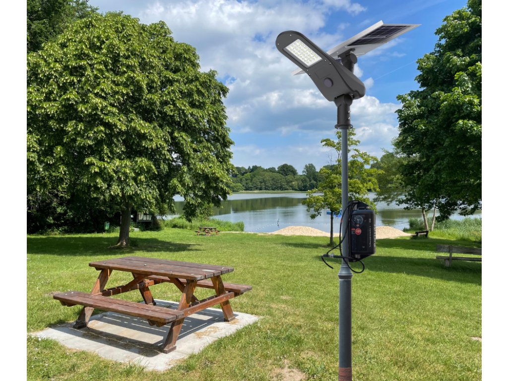 Toto solární LED pouliční osvětlení představuje moderní, úsporné a plně autonomní řešení pro lokality bez elektrické přípojky. Kromě kvalitního LED světelného výkonu nabízí i USB výstup, který umožňuje nabíjení zařízení nebo napojení kompresoru, pumpičky a dalšího příslušenství.