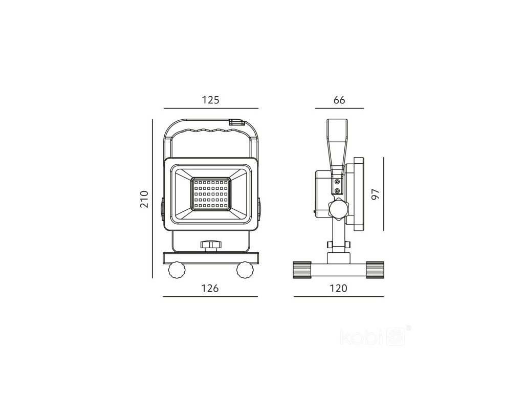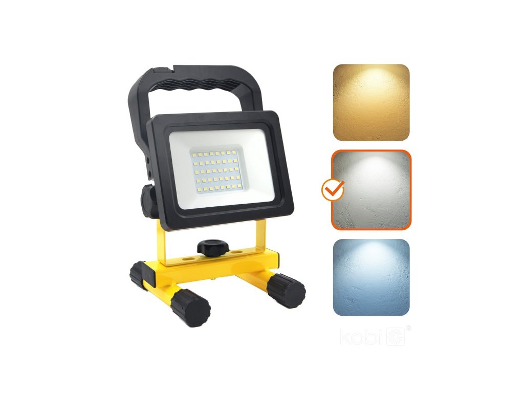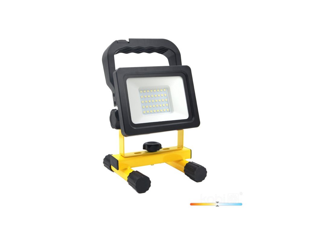 LED světlomet Kobi TIGRA B 20W je přenosný a dobíjecí pracovní reflektor určený pro náročné podmínky v dílnách, na stavbách či při údržbě. Nabízí vysoký světelný výkon 1600 lm, neutrální bílé světlo 4000 K a robustní konstrukci z hliníku, oceli a plastu. Díky stupni krytí IP54 a odolnosti IK06 spolehlivě funguje i v prašném a vlhkém prostředí. Vestavěná Li-ion baterie (3,7 V / 4400 mAh) zaručuje mobilitu bez nutnosti připojení k síti.