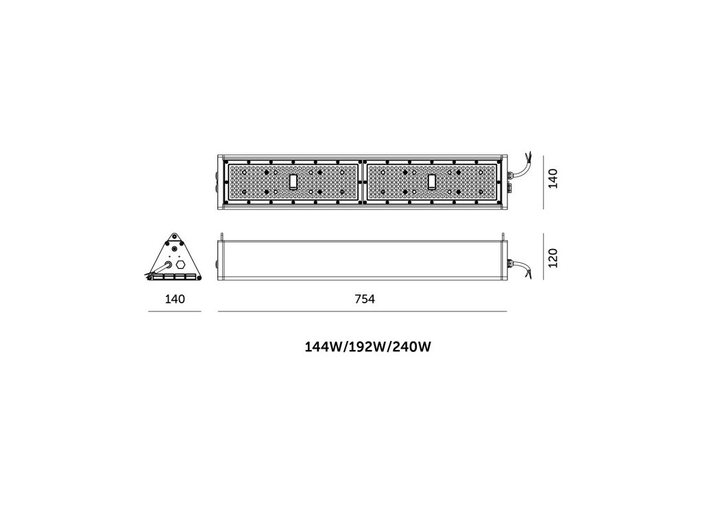 Nastavitelný výkon: 144W / 192W / 240W – tři úrovně výkonu v jednom svítidle