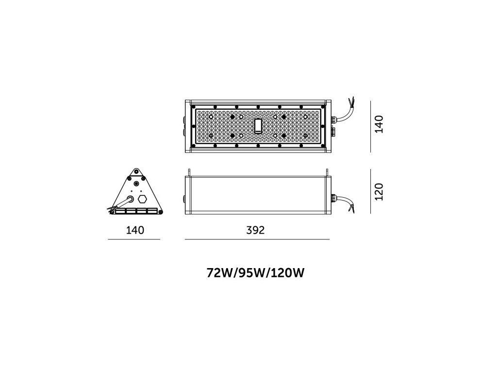 Nastavitelný výkon: 72W / 95W / 120W – tři úrovně výkonu v jednom svítidle