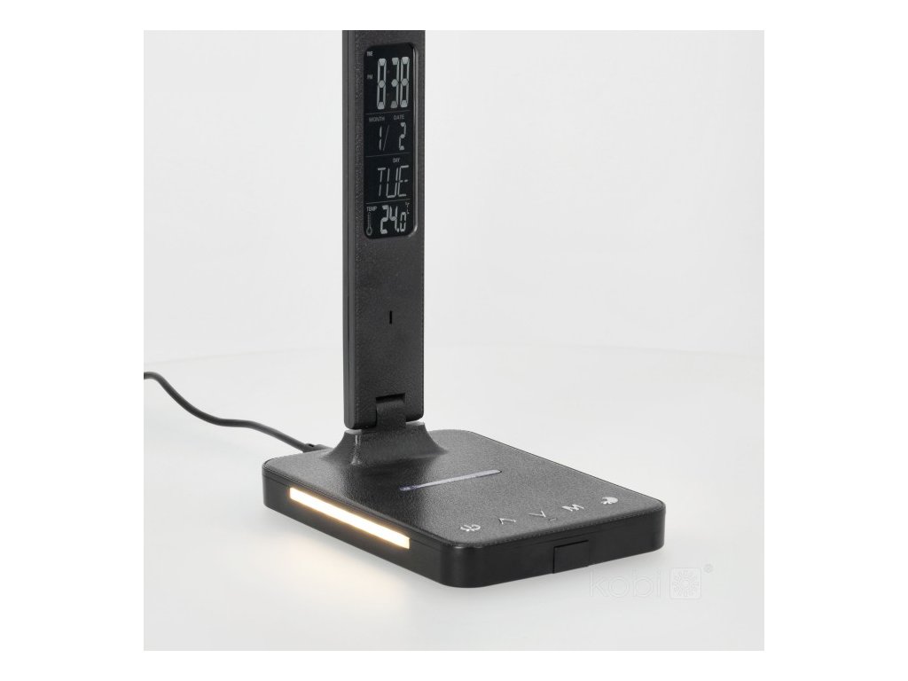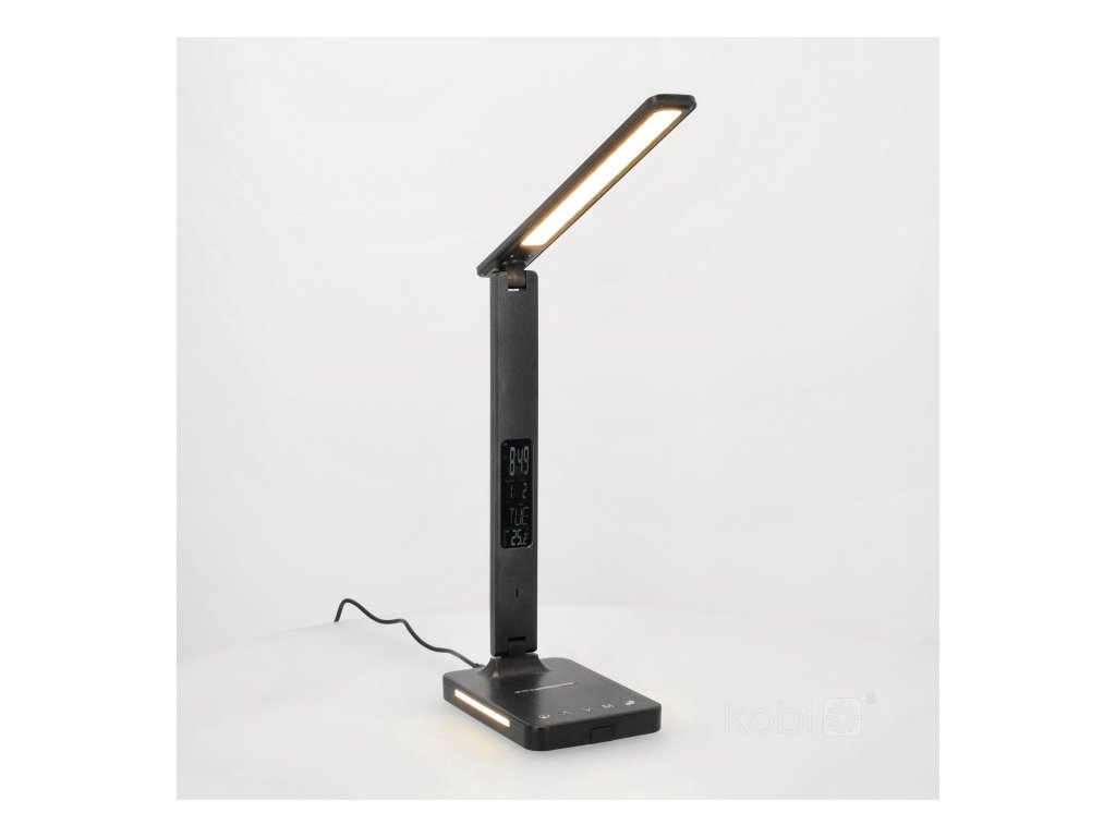 Praktické provedení lampy umožňuje nastavení podstavce v úhlu 90° a světelného prvku až o 180°. Součástí je také vysunovací držák telefonu a možnost nabíjení mobilních zařízení – buď kabelem přes USB-A port, nebo bezdrátově (Qi 10W).