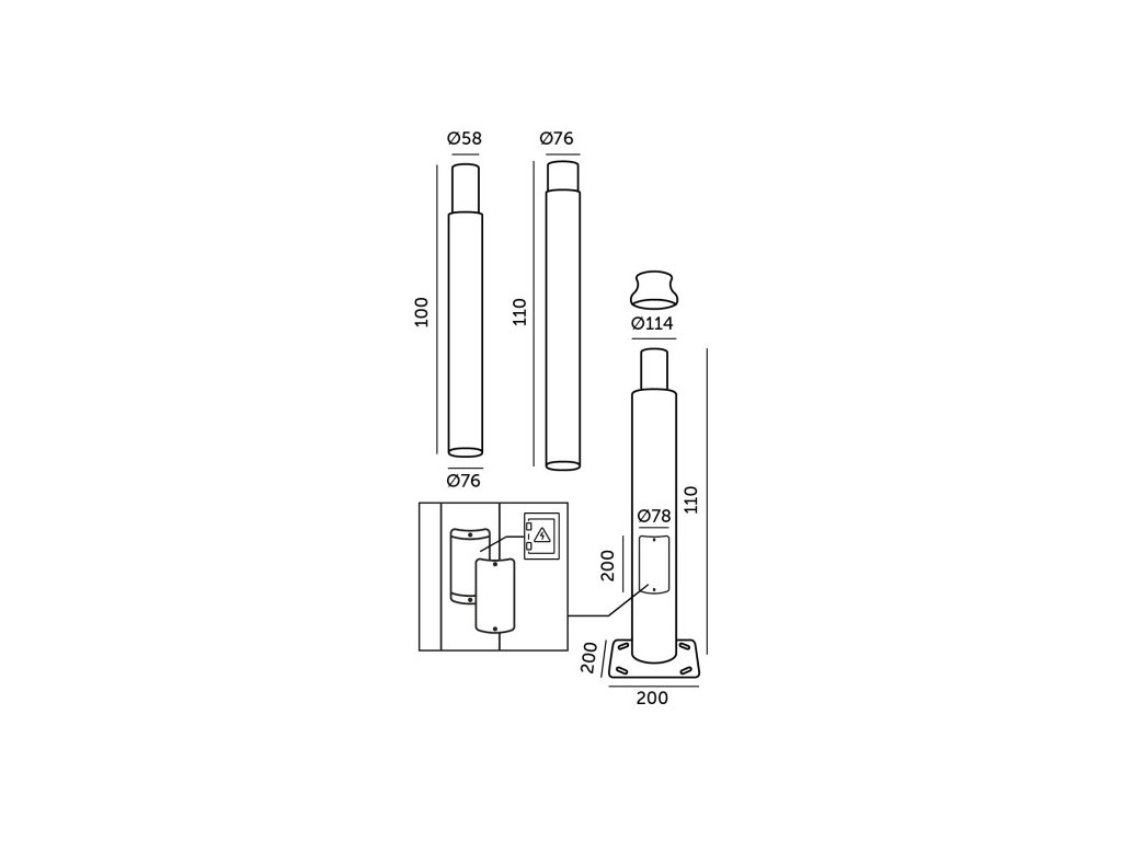 Výška: 3000 mm / rozměry sloupu: 114/76/60 mm