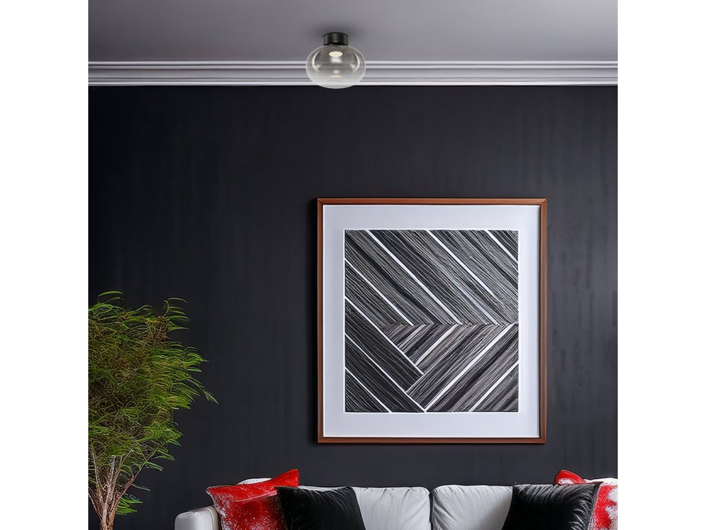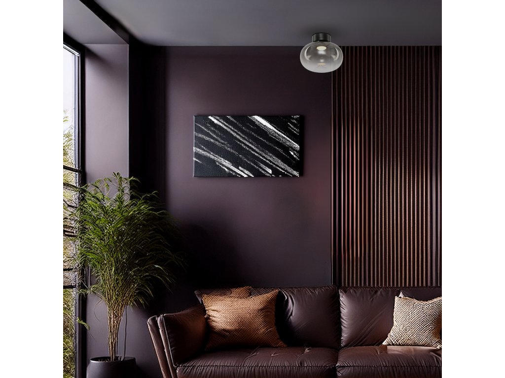 Řada VASO nabízí elegantní stropní lampy, které kombinují moderní estetiku s praktickou funkčností. Tento jednobodový model v černém provedení se skleněným stínidlem o průměru 180 mm poskytuje příjemné teplé světlo (3000 K) a díky úhlu vyzařování 120° rovnoměrně osvětlí celý prostor.