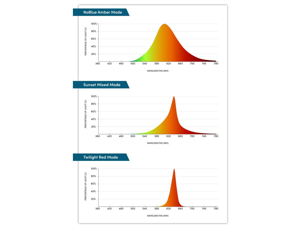 | Typ světla | 100% bez modrého světla – Amber / Orange / Red |