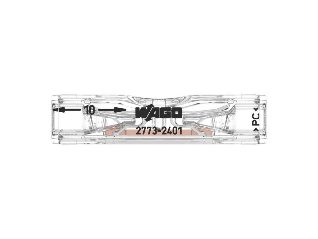 Kompaktní průchozí svorka WAGO 2773-2401 slouží pro rychlé a bezpečné spojení dvou vodičů bez použití nářadí. Díky technologii PUSH WIRE® stačí vodič jednoduše zasunout – pružinový kontakt zajistí pevné a dlouhodobě spolehlivé spojení.