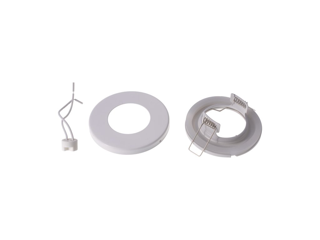 Podhledový rámeček pro LED žárovky a halogenové žárovky typu MR16 a GU10. Barva rámečku: bílá Stupeň krytí: IP44 Obsah balení: rámeček a patice MR16. Rozměry: viz. obrázek Materiál: lisovaný plech Pro žárovky na 230V s paticí GU10 je nutno patice doobjednat zde. Součástí podhledového rámečku není žárovka.Doplňkové parametry