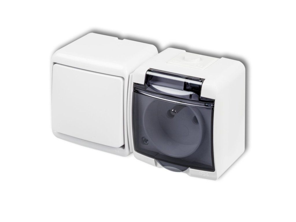 Jednoduchý vypínač ř.1 a jednonásobnou zásuvkou IP54 s klapkou