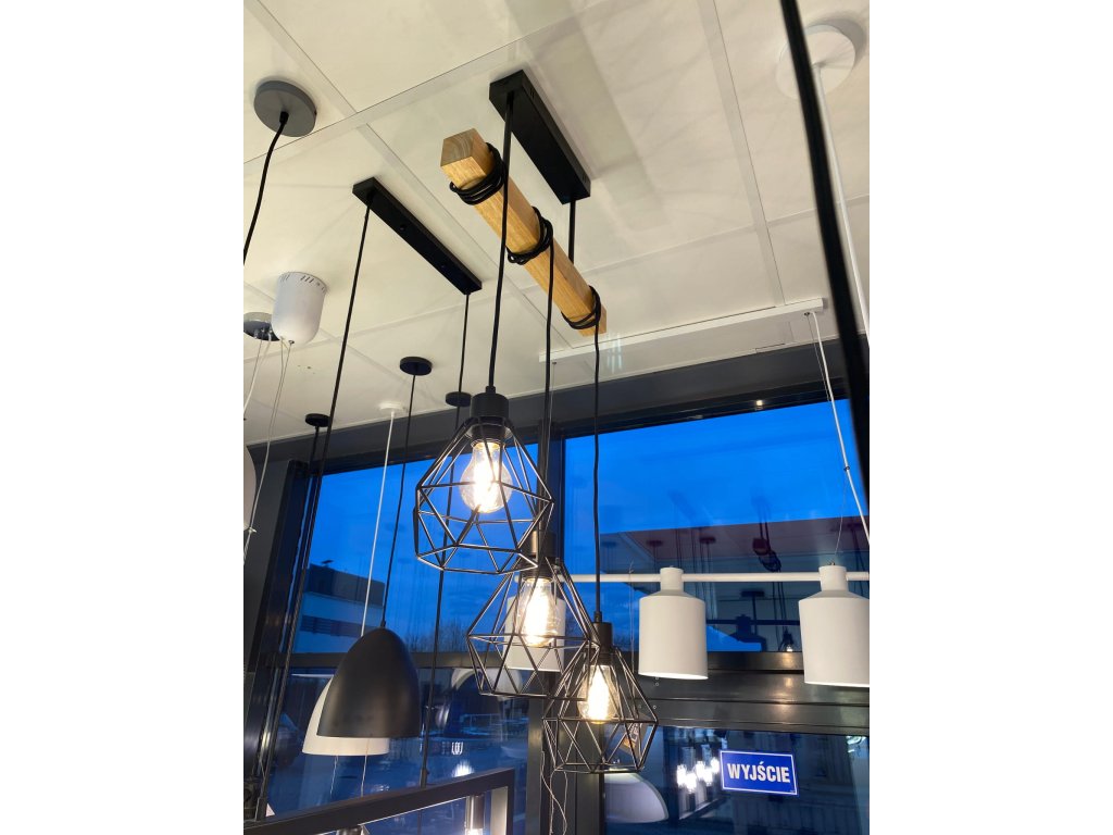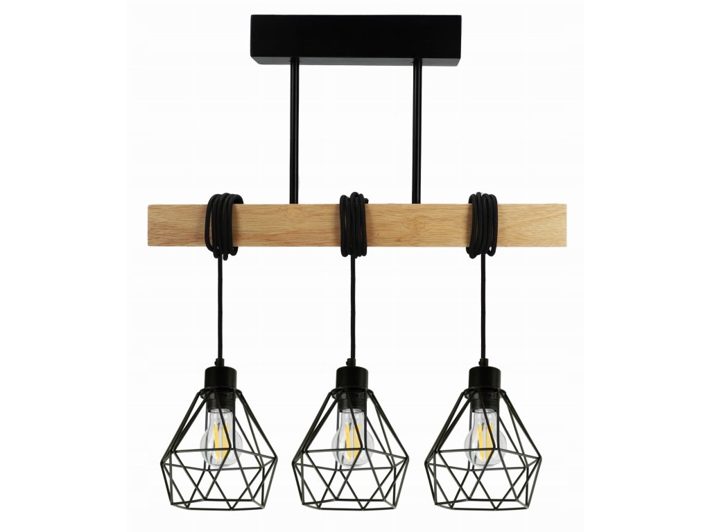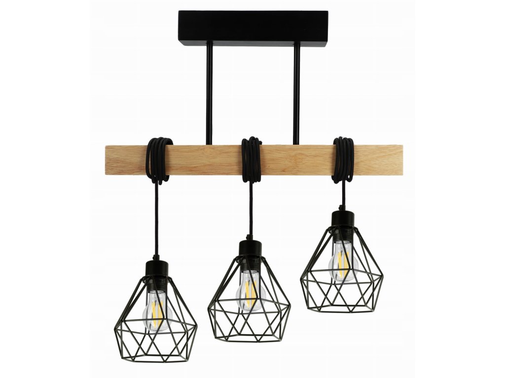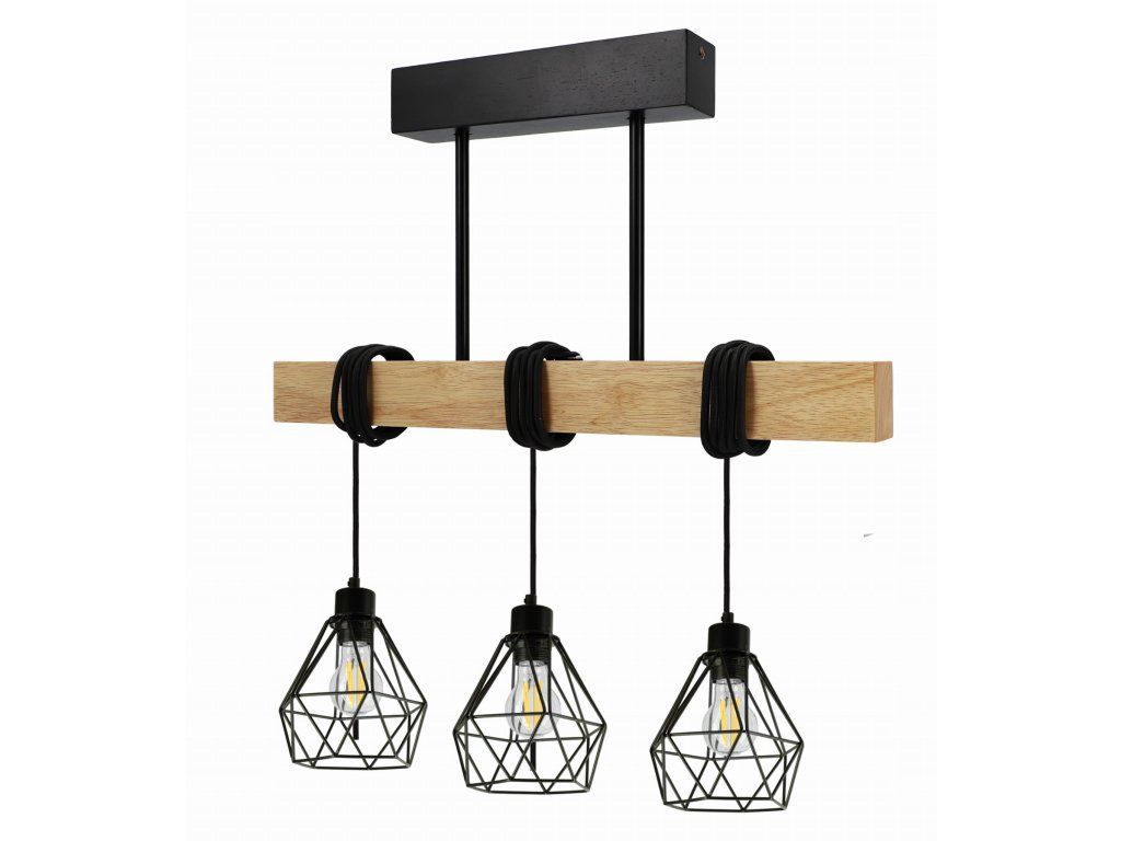 Stropní svítidlo závěsné s dřevěným trámem 3xE27