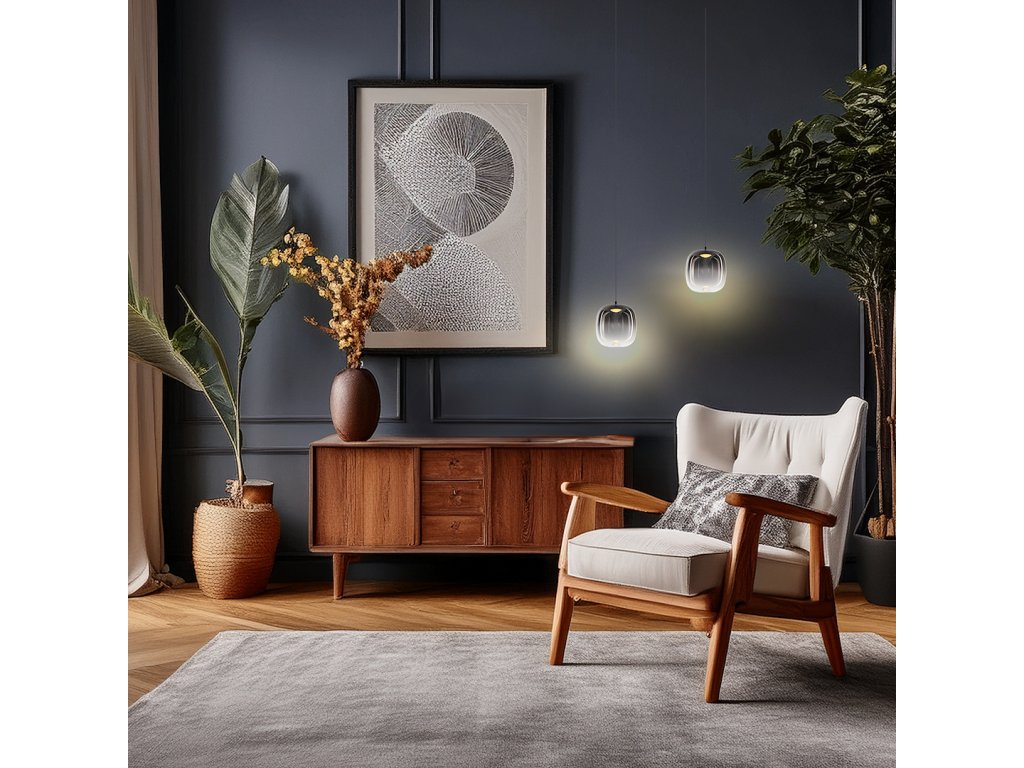 Řada VASO přináší elegantní závěsné lampy, které spojují moderní design s funkčností. Model v černém provedení se skleněným kouřovým stínidlem vytváří jedinečnou atmosféru díky teplému světlu o teplotě 3000 K.